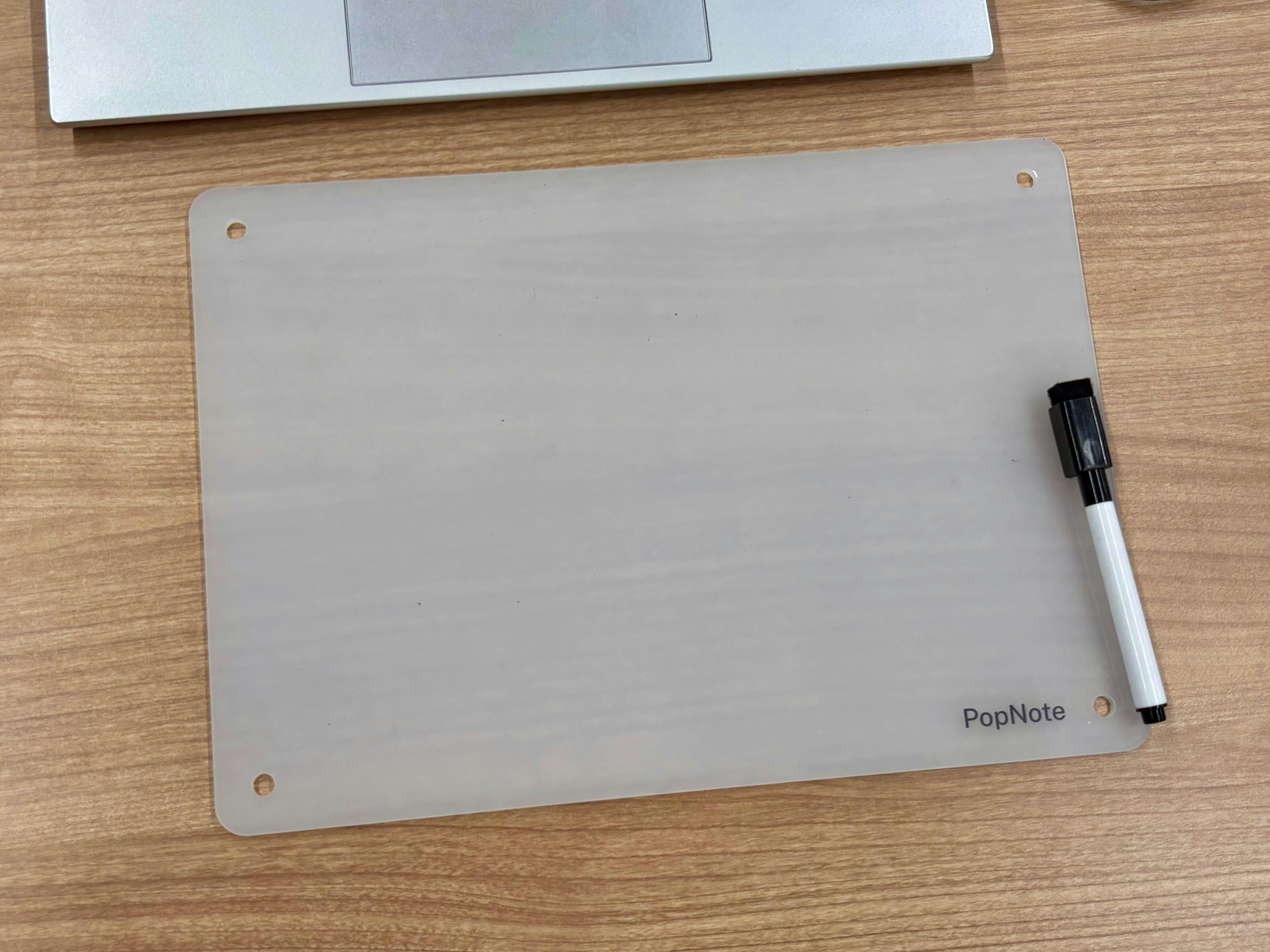 PopNoteはアクリル製のため、通常のホワイトボードよりも消えやすく、長く綺麗にお使いいただけます。